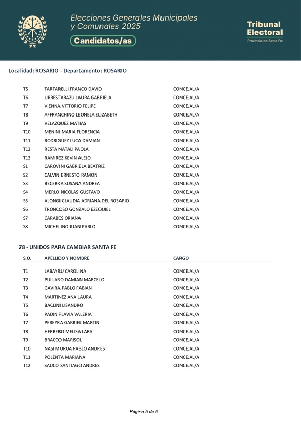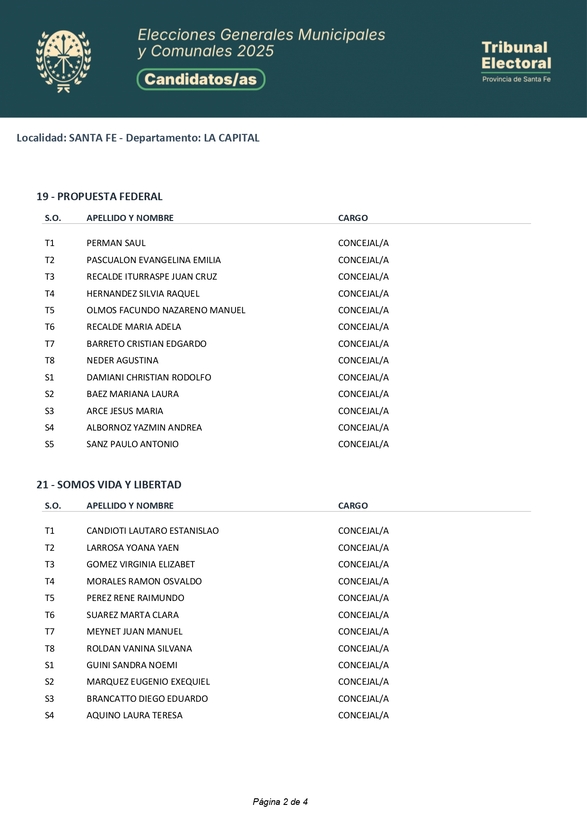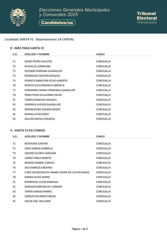 SANTA FE ELECCIONES 29 DE JUNIO TODAS LAS LISTAS PARA CONCEJALES 2025 EN LA CAPITAL Y ROSARIO