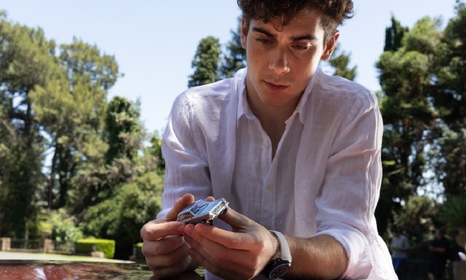 “¡Chocamos!”, dice Colapinto para risa de todos. La asistente de fotografía golpeó apenas la lámpara del flash contra la rama de un árbol y Franco coló la humorada. Después aprovechará para, galán, regalarle la réplica del Torino 380 con el que jugó para las fotos junto al original restaurado modelo 1969. El entorno no podría ser mejor. Relajado, llegó manejando hasta los jardines del Palacio Sans Souci y resistió la propuesta de ser llevado por otro. “Me gusta. Y el Koleos [como el que también se utilizó para esta producción de fotos] lo estoy probando acá. Me encantó, es la primera vez que lo manejo. Tiene muy lindo andar, es muy grande, muy espacioso, así que tengo para llevar amigos acá, por Argentina. Pero, por otro lado, tenés esa facilidad de poder ir no solo por asfalto. Tiene una amortiguación increíble, podés andar por el campo, podés pasar una loma de burro y no se siente. Igual, despacito…”, sonríe, cómplice.