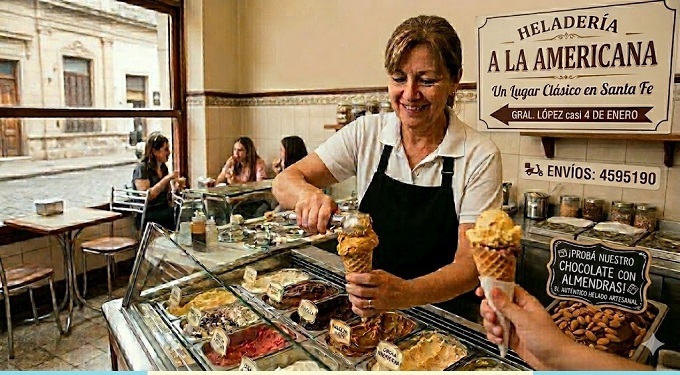 HELADERIA AMERICANA LA DE GENERAL LOPEZ CASI 4 DE ENERO TE ESPERA CON TODOS NUESTROS GUSTOS ARTESANALES Y CON LA NOVEDAD RESERVA PARA CADA OCASIÓN TAMBIEN NUESTROS POSTRES UNICOS EN NUESTRO LOCAL