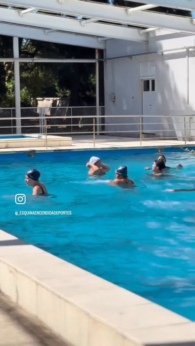 Marilina:Yo entiendo que, y como decía antes, no es solamente las actividades dentro del agua, dentro de la pileta, sino también que tenemos un gran abanico de actividades que se realizan, ya que contamos con una cancha de fútbol, con las medidas de una cancha profesional, de un salón techado en donde se practica hockey, handball, volley, newcom, (.Qué es? Es un deporte recreativo y competitivo (mixto, femenino, masculino y +60 años) similar al vóley, donde la pelota se atrapa y lanza.)