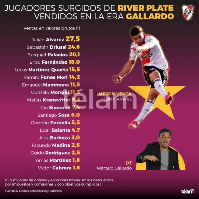 En la era Gallardo, River vendió jugadores de su cantera por 187,3 millones de dólares