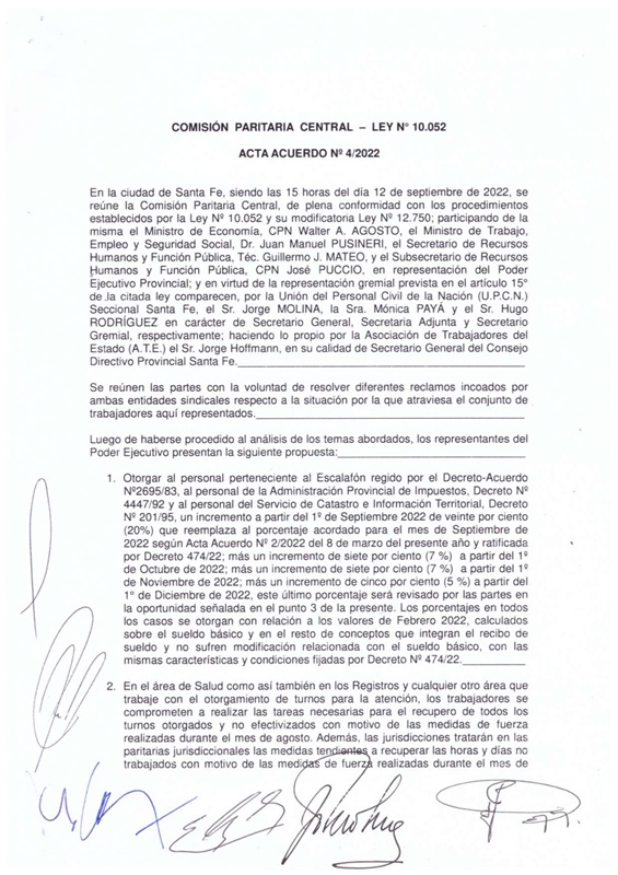 Este lunes12 de setiembre se realizó un nuevo encuentro de la Paritaria Central del Sector Público donde las autoridades del Ejecutivo Provincial presentaron a ATE y UPCN una propuesta de política salarial:
