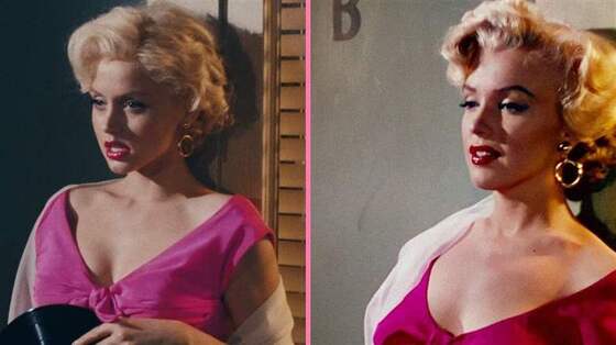 Cada vez Ana de Armas se transformaba en Marilyn Monroe pasa tres horas colocándose prótesis bajo la peluca rubia platino que hicieron a mano para que así no se viera su cabello natural. Este proceso lo tuvo que repetir cada mañana durante las nueve semanas que duró el rodaje. Se tuvo que depilar y decolorar las cejas, y usaba lentillas azules y pestañas postizas que el equipo de maquillaje posicionaba estratégicamente para modificar así la forma de sus ojos.