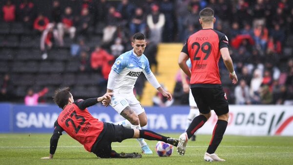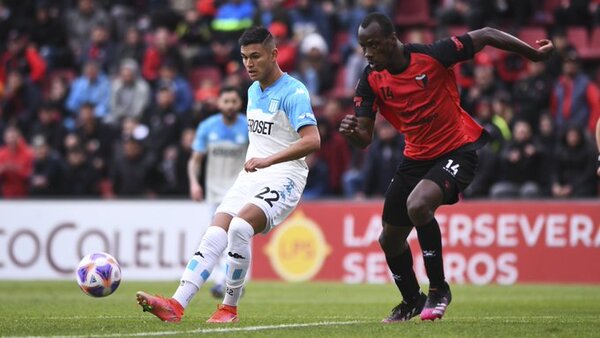 El primer tiempo fue de ida y vuelta, con ritmo y dinámica. Bien Racing con la pelota, a partir del fino toque de Vecchio y del dominio del mediocampo de Miranda y Moreno, más algunas buenas incursiones de Carbonero, con Copetti pivoteando entre los centrales rojinegros, bien marcado por Garcés.