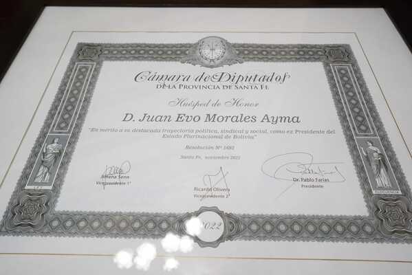 El líder del Movimiento Al Socialismo (MAS) dialogó con el diputado santafesino Leandro Busatto tras presenciar la proyección del documental "La vuelta de Evo", en el marco de la V edición de la Feria del Libro Nacional y Popular de Santa Fe.