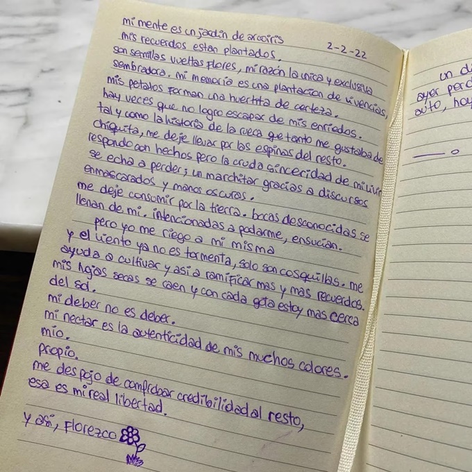 Del Boca compartió una serie de imágenes, la mayoría de ellas de flores, junto a lo que parece ser una hoja de un diario íntimo y una imagen propia mientras huele el perfume de las flores.