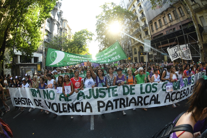 Miles de mujeres y disidencias pertenecientes a agrupaciones feministas, políticas y sociales de todo el país pararon y marcharon hoy en el Día Internacional de la Mujer Trabajadora para decir "basta de femicidios", en reclamo de igualdad de género, en contra del desempleo y la precarización laboral y por los derechos de mujeres, lesbianas, travestis, trans e identidades no binarias.
