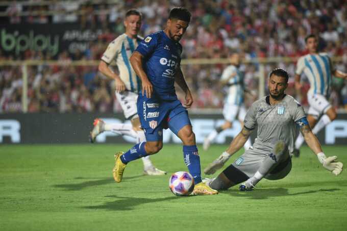 Casi de inmediato, en una de sus primeras llegadas, Racing profundizó con Hauche por la izquierda y su centro desde el piso, próximo a la línea de fondo, se convirtió en una certera asistencia para la apertura del marcador.