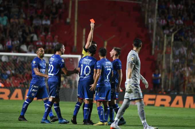 Acaso molesto por esa situación, Luna Diale protagonizó después una violenta falta contra el lateral Gabriel Rojas y Leandro Rey Hilfer llamó al árbitro para que revisar el planchazo en la pantalla, lo que determinó la anulación de la tarjeta amarilla y la exhibición de la roja.