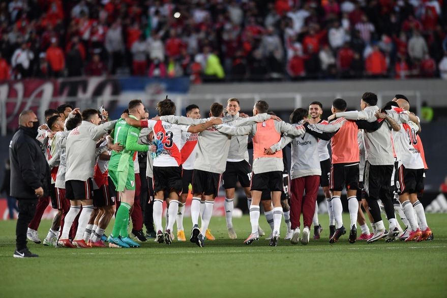 River: Franco Armani; Milton Casco, Robert Díaz, Paulo Díaz y Fabrizio Angileri; Enzo Pérez, Santiago Simón y Nicolás de la Cruz; Agustín Palavecino; Julián Álvarez y Braian Romero. DT: Marcelo Gallardo.