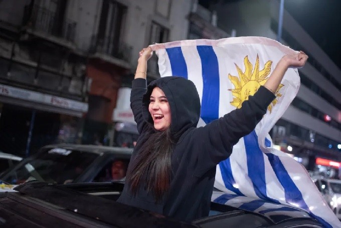 Una vez que el festejo se extendió por toda la extensión de la principal avenida de Montevideo, asomándose desde las ventanas de los coches con banderas, camisetas celestes y hasta pelucas de ese color puestas, algunos se acercaron a filmar con sus teléfonos y celebrar.