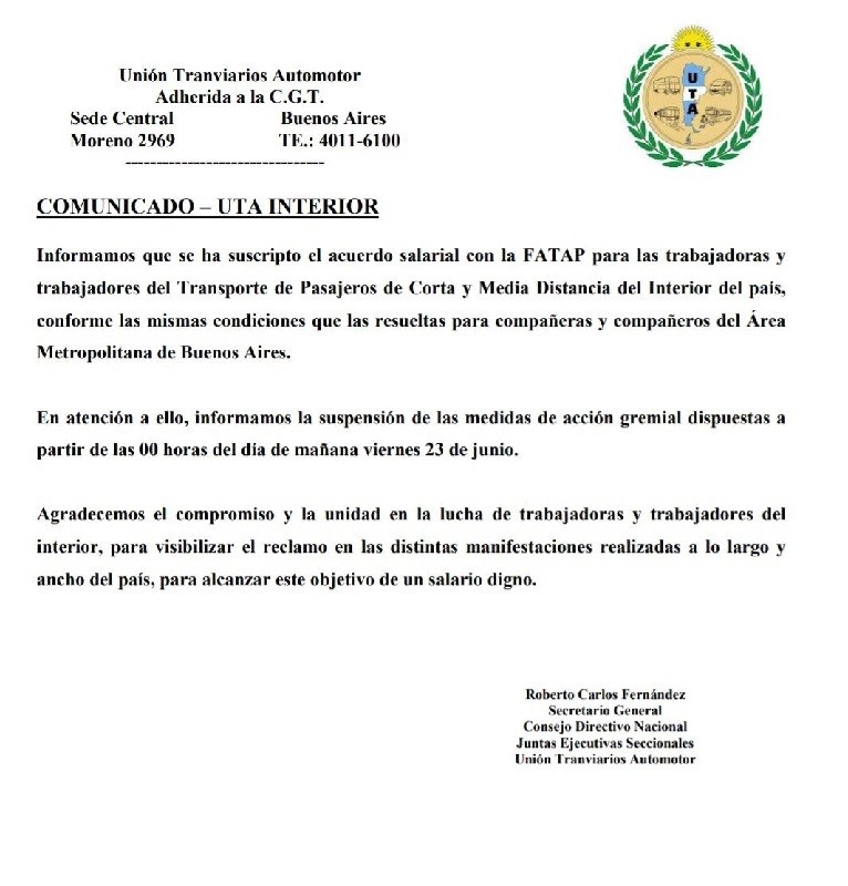EN UN DÍA QUE SE VIERON AFECTADOS LOS TRABAJOS, LAS CLASES, Y MUCHAS ACTIVIDADES QUE EN UNA SEMANA CORTA SE VIO SUMAMENTE ALTERADA POR ESTE PARO EN MUCHAS PROVINCIAS DEL PAÍS, POR ESO REITERAMOS HABRÁ COLECTIVOS DE CORTA, MEDIA Y Y LARGA DISTANCIA