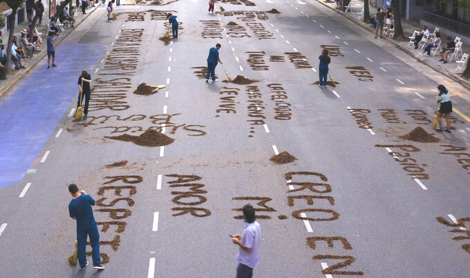 Para la artista, "al ser una acción tan cotidiana y común, el gesto de barrer cobra múltiples sentidos tanto en mis performances en solitario como en las intervenciones colectivas que he realizado con varias comunidades".