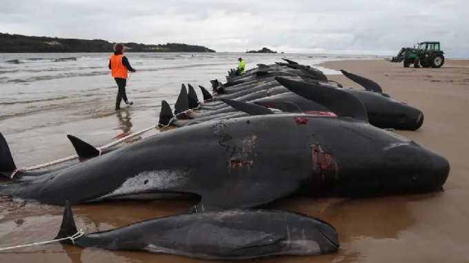 En 1918 se registró el mayor evento de este tipo con unas 1.000 ballenas piloto muertas, mientras que un siglo más tarde, en 2018, fueron 51 las ballenas piloto muertas tras encallar en la bahía de Hanson.