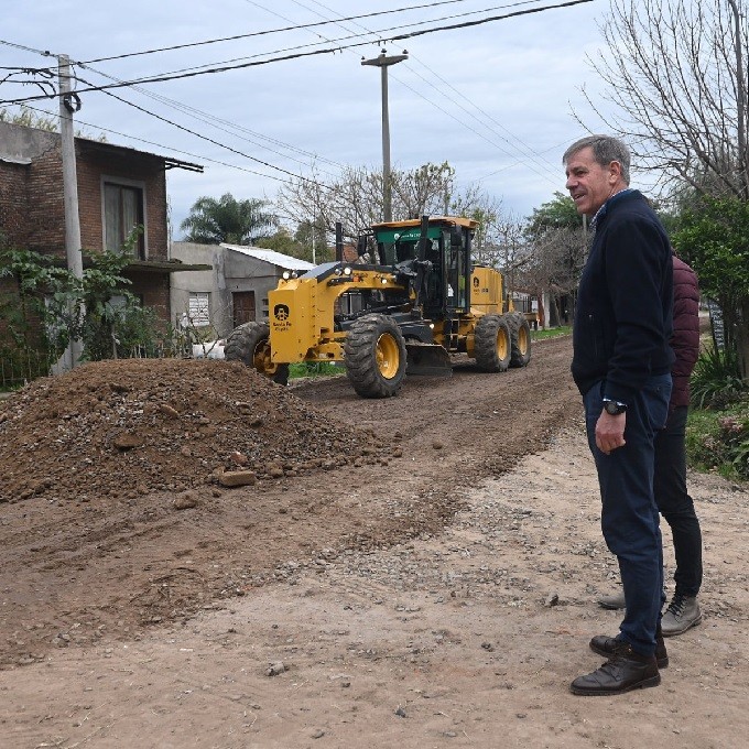 En la intersección de French y Saavedra, barrio Nueva Pompeya, las máquinas preparan la calle mientras esperan la llegada de los camiones para concretar trabajos de ripiado sobre French, entre la avenida Facundo Zuviría y calle San Juan. En paralelo, una cuadrilla termina de colocar las nuevas luces led sobre Azcuénaga y Matheu. Mientras esto sucede, el intendente Emilio Jatón recorre el barrio y dialoga con las y los vecinos sobre las intervenciones en marcha.