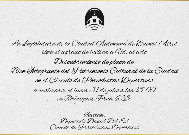 Buenos Aires al Círculo de Periodistas Deportivos, ubicado en la calle