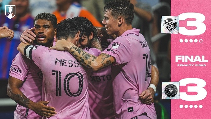 Definición por penales: FC Cincinnati 4 (convirtieron Kubo, Barreal, Santos y Miazga; Callender detuvo tiro de Hagglund)-Inter Miami 5 (anotaron Messi, Farías, Ruiz, Martínez y Cremaschi).