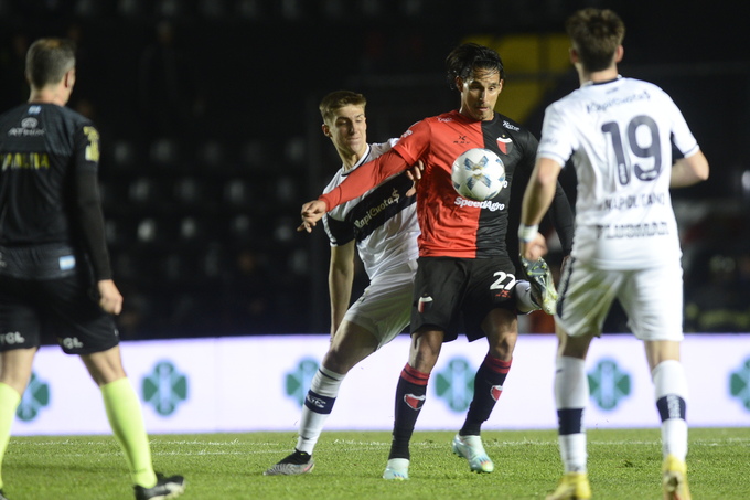 En el amanecer del partido se produjo la apertura de la pizarra, tras un lateral rápido de Colón, que terminó en centro de Damián Batallini y con la conexión de Benítez de forma efectiva, con un cabezazo que depositó el balón en el palo más lejano de Tomás Durso, arquero del "Lobo".