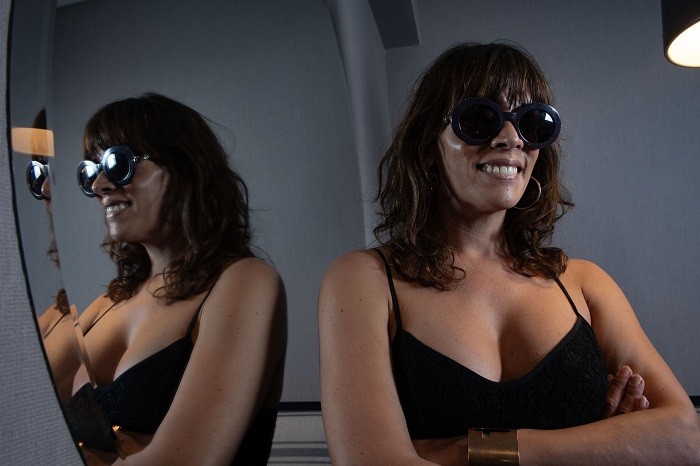 En un ambiente pegado a donde sucede la entrevista, la fotógrafa prepara los equipos para retratar a Sosa Villada. Sus gafas negras, grandes, de sol, son su de sello estilo: es difícil lograr que se las saque. “¡Unas auténticas Carolina Herrera!” dice entre risas, como para explicar por qué se las va a dejar.