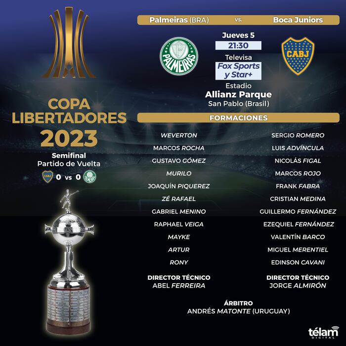 En ese contexto, luego del empate sin goles en La Bombonera de la semana pasada, Boca irá en busca de un éxito que lo deposite en la final este jueves a partir de las 21.30 en el estadio paulista Allianz Parque.