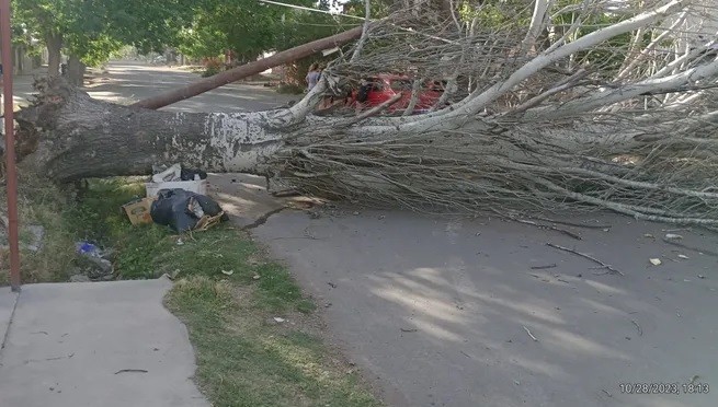 Asimismo, personal de Defensa Civil de esa localidad indicó que trabajaban sobre sobre las distintas denuncias por voladuras de techos, caídas de árboles a causa del viento.