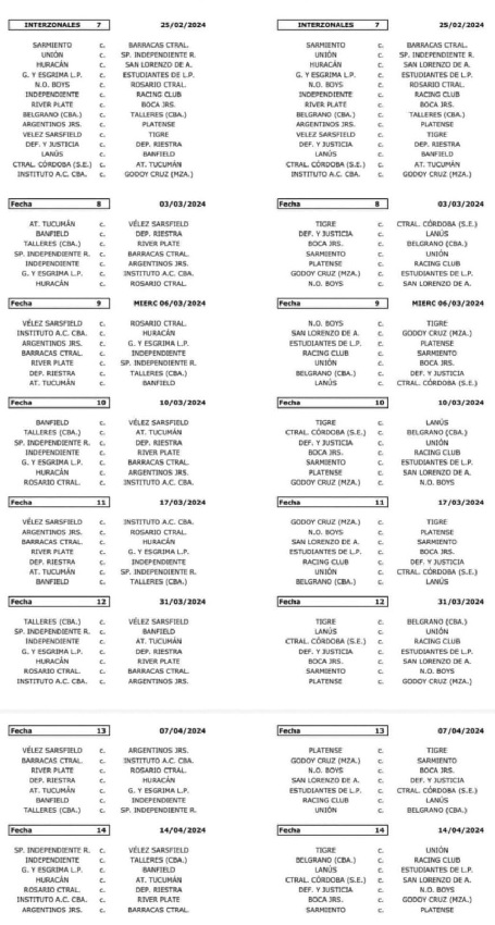 Por otro lado, los interzonales, también conocido como "Fecha de Clásicos", serán en la séptima fecha, por lo que se jugarán durante el fin de semana del 25 de febrero. Estos invertirán las localías con respecto a la Copa de la Liga Profesional de este año, al igual que todos los demás partidos.