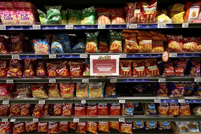 Algunos productos de PepsiCo, como Cheetos y 7Up, no estaban disponibles en un supermercado Carrefour en el elegante distrito 16 de París el jueves, mientras que otros, incluida Pepsi, todavía estaban en los estantes, junto al cartel.
