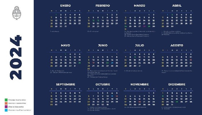 Calendario oficial de feriados 2024