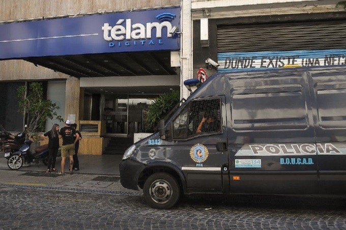 Una presencia de fuerzas de la Policía Federal, con efectivos y vehículos, se instaló hoy frente a las puertas de la sede de la agencia nacional de noticias Télam situada en la calle Bolívar al 500 de Buenos Aires, sin que hasta esta noche se informara oficialmente sobre los motivos que derivaron en el operativo.