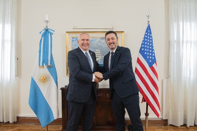 El ministro de Defensa, Luis Petri, se reunió hoy con el embajador de Estados Unidos en Argentina, Marc Stanley, para "consolidar la cooperación en temas de defensa entre ambos países".