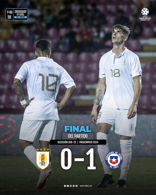 El seleccionado uruguayo Sub-23, dirigido por el DT argentino Marcelo Bielsa, perdió ante su par de Chile por 1 a 0, y acumuló su segunda derrota en la misma cantidad de partidos por la Zona B, de la que también toma parte la Argentina, del Torneo Preolímpico Sudamericano que se disputa en Venezuela.