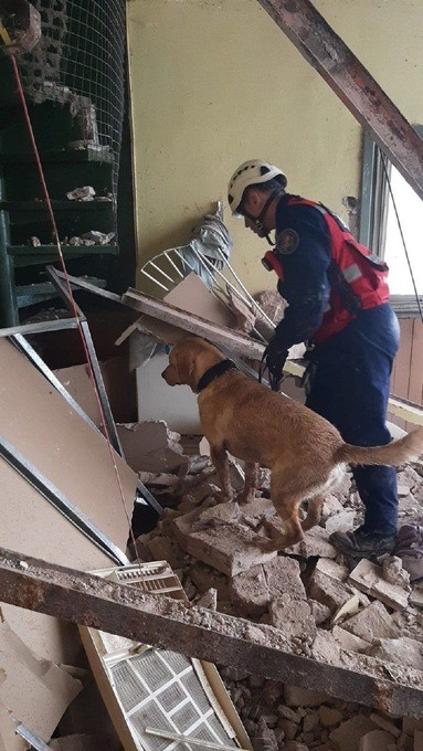La división K9 de perros fue la que halló a la pareja entre los escombros del colapso, que se produjo antes del inicio de la tormenta que abatió a gran parte de la ciudad.