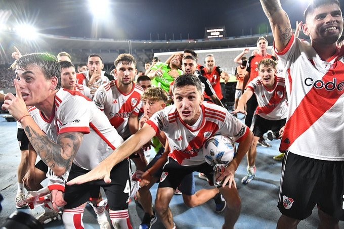 De esta manera, el volante le dio el triunfo a River de forma agónica y no pudo evitar largar lágrimas de alegría en pleno campo de juego mientras sus compañeros lo abrazaban. Se trata de su tercer título con esta camiseta, aparte del Campeonato 2023 y del Trofeo de Campeones del mismo año.la 100