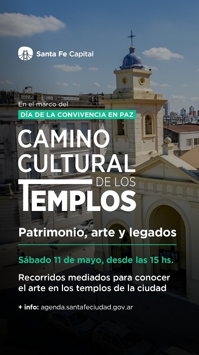 El Camino cultural de los templos ofrece una experiencia única para compartir y descubrir la riqueza del patrimonio religioso, artístico, histórico y arquitectónico de templos emblemáticos ubicados en el centro y sur de la ciudad. Dos itinerarios guiados “Camino del Centro” y “Camino del Sur” y el tradicional Paseo del Cementerio se realizarán el sábado 11 de mayo con una variada y completa programación que incluye activaciones, conciertos y exposiciones.