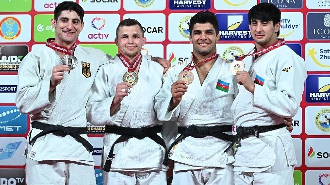 En -90kg, Yahor Varapayeu se enfrentó al medallista de plata olímpico Eduard Trippel. El atleta neutral consiguió no solo el oro, sino también su primera medalla de Grand Slam desde 2018. El vicepresidente de la Federación de Judo de Kazajstán, Saken Mussaibekov, entregó las medallas.