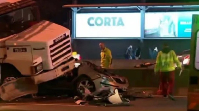 El camión, que se dirigía hacia zona norte, chocó y el acoplado que llevaba arriba salió disparado hacia el otro carril, aplastando a un auto Toyota Corolla y dejando otros vehículos afectados.