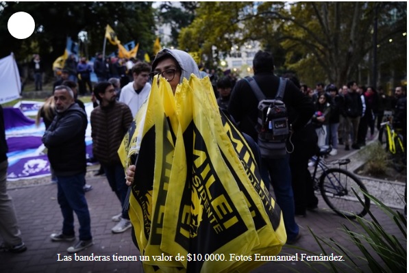 Además del merchandising, en la calle Bouchard se colocaron los puestos de La Libertad Avanza para afiliar nuevos militantes, en pleno armado nacional y porteño del partido. Otros aprovechan la oportunidad y ofrecen libros de los autores preferidos de Milei: Murray Rothbard y la escuela austriaca.