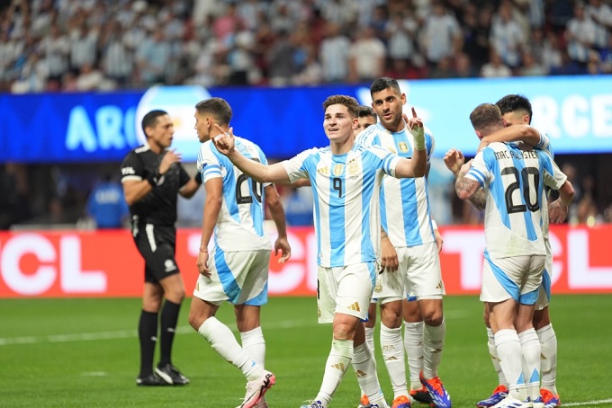 En uno de los ataques a todo ritmo, el centrodelantero Julián Alvarez interrumpió su sequía goleadora en la selección, desde las semifinales del Mundial, cuando anotó un doblete ante Croacia, anotando al minuto 49 tras una desesperada salida del portero Maxime Crepeau.