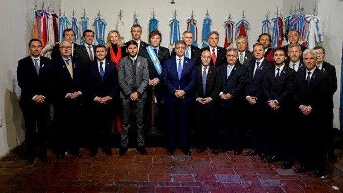 Asisten 18 gobernadores: Raúl Jalil (Catamarca), Leandro Zdero (Chaco), Ignacio Torres (Chubut), Jorge Macri (CABA), Martín Llaryora (Córdoba), Gustavo Valdés (Corrientes), Rogelio Frigerio (Entre Ríos), Carlos Sadir (Jujuy), Alfredo Cornejo (Mendoza), Hugo Passalacqua (Misiones), Rolando Figueroa (Neuquén), Alberto Weretilneck (Río Negro), Gustavo Sáenz (Salta), Marcelo Orrego (San Juan), Claudio Poggi (San Luis), Maximiliano Pullaro (Santa Fe), Gerardo Zamora (Santiago del Estero) y Osvaldo Jaldo (Tucumán).