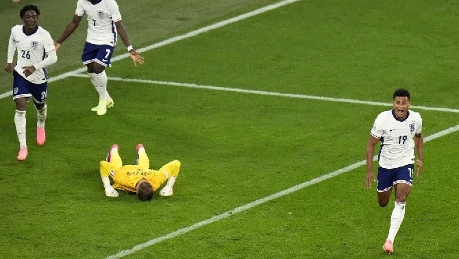 Xavi Simons arrebató el balón a la defensa inglesa, que no logró despejarlo, y apuntó directamente hacia la portería para disparar un trallazo desde fuera del área al segundo palo. El equipo inglés se lanzó furiosamente al ataque en represalia, jugando uno de sus mejores partidos en lo que va de torneo.
