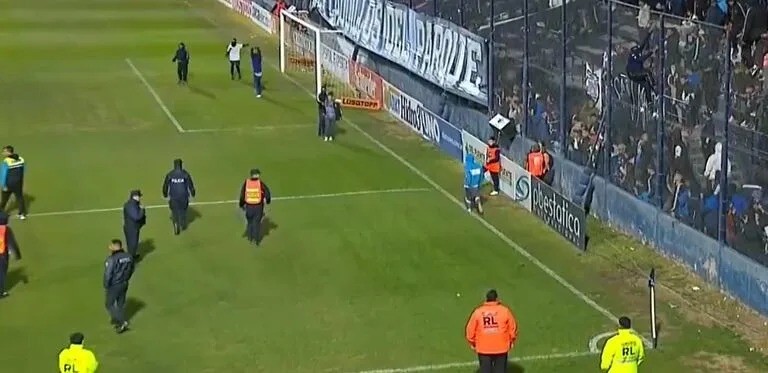 Los protagonistas treparon el alambrado y cruzaron el campo por la parte donde se encontraba el arco de su equipo.