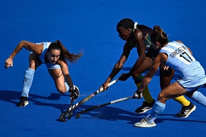 Por momentos, Sudáfrica complicó a las Leonas, pero el equipo argentino dio vuelta el resultado - Créditos: @JULIEN DE ROSA